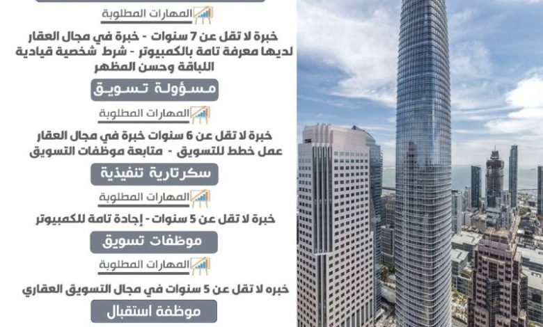 أكمل القراءة »ننشر لكم متابعينا اعلان شركة عقارية في الكويت من خلال بوابة التوظيف عبر موقعها الرسمي عن وظائف للرجال والنساء وننشر…